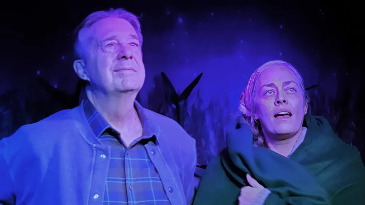 As they look to the stars, George (TheatreXP founder and producing artistic director R.T. Bowersox) and Em (his real-life spouse Melody G. Moore) reflect (and bicker) about their years together—their losses, accommodations, disappointments, and loyalties and differences in an increasingly inexplicable and mannerless time. Their journey demonstrates that complex long-term unions are rooted in intentional connection, rich with hope and character, and that the painful art of letting go is a necessity of aging successfully.